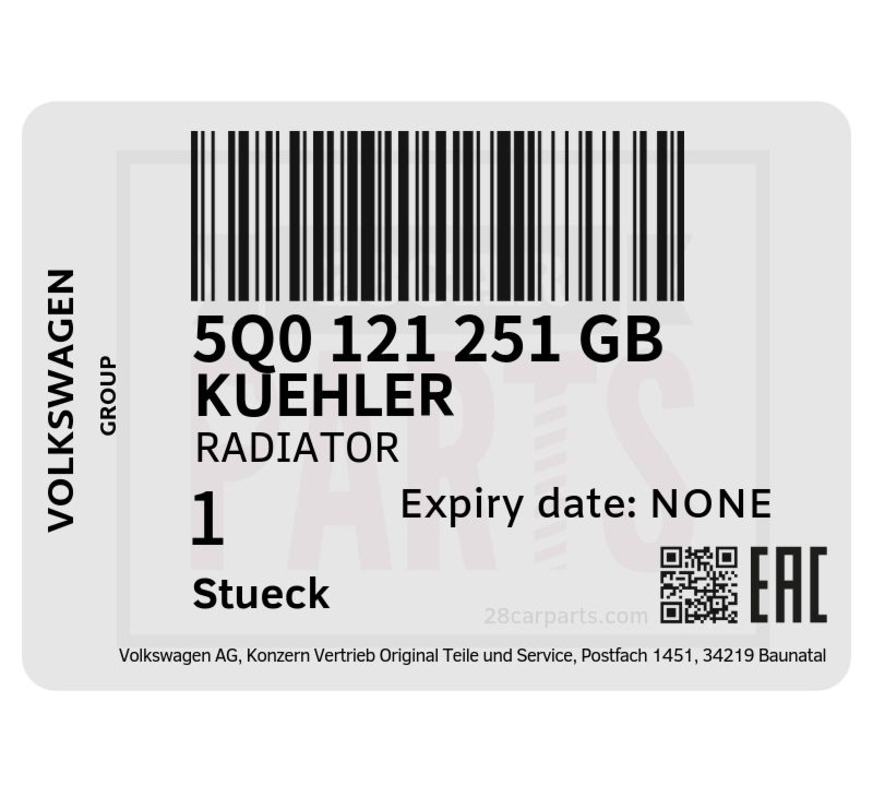 | Genuine Part # | 5Q0-121-251GB |