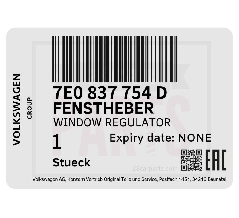 - Audi VW 7E0837754D 車窗升降器 (右前)