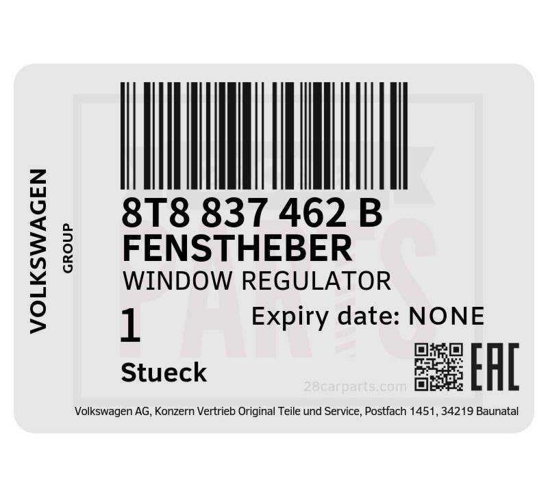 - Audi VW 8T8837462B 車窗升降器 (右前)